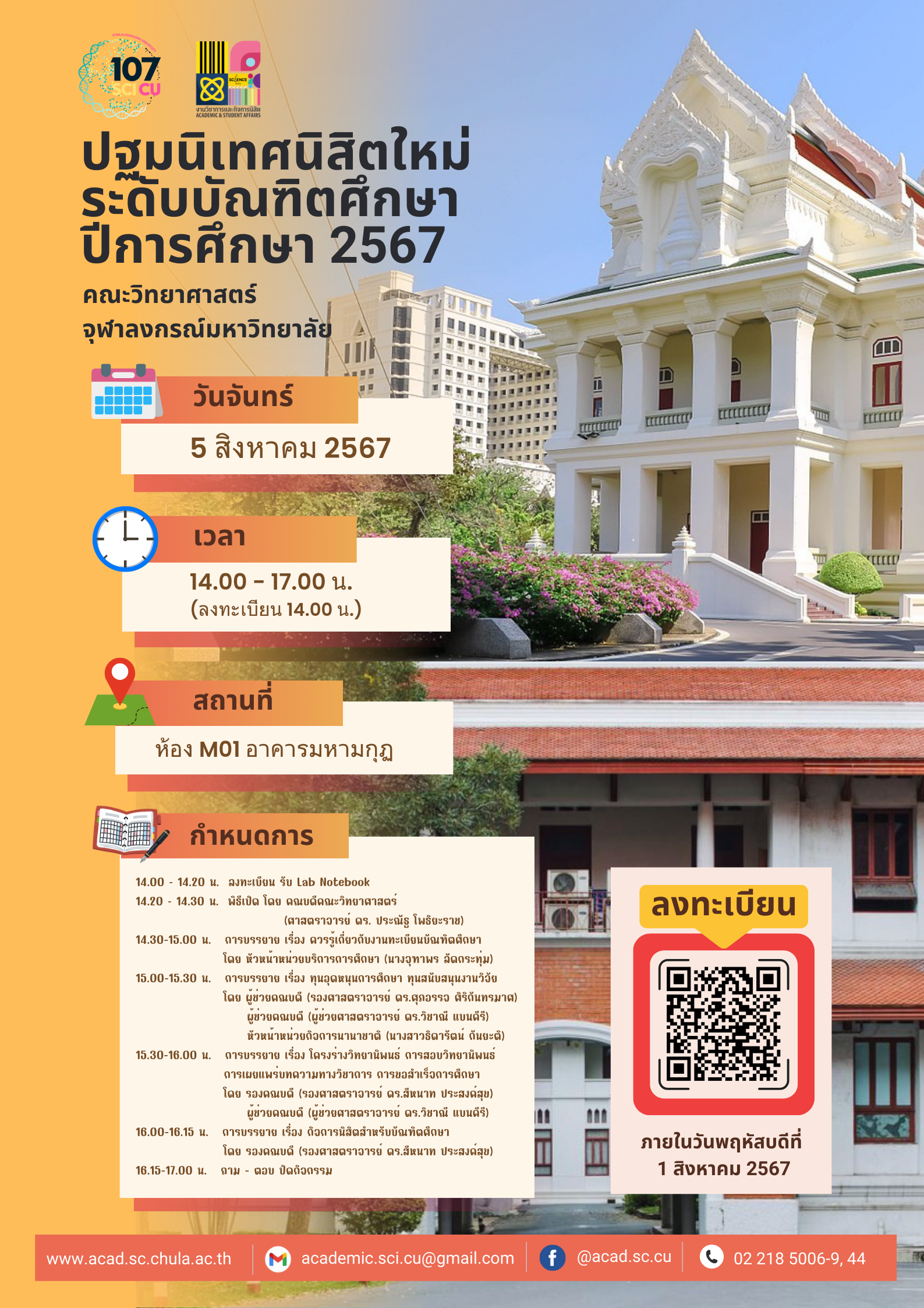 ปฐมนิเทศนิสิตใหม่ระดับบัณฑิตศึกษา คณะวิทยาศาสตร์ จุฬาฯ ปีการศึกษา 2567