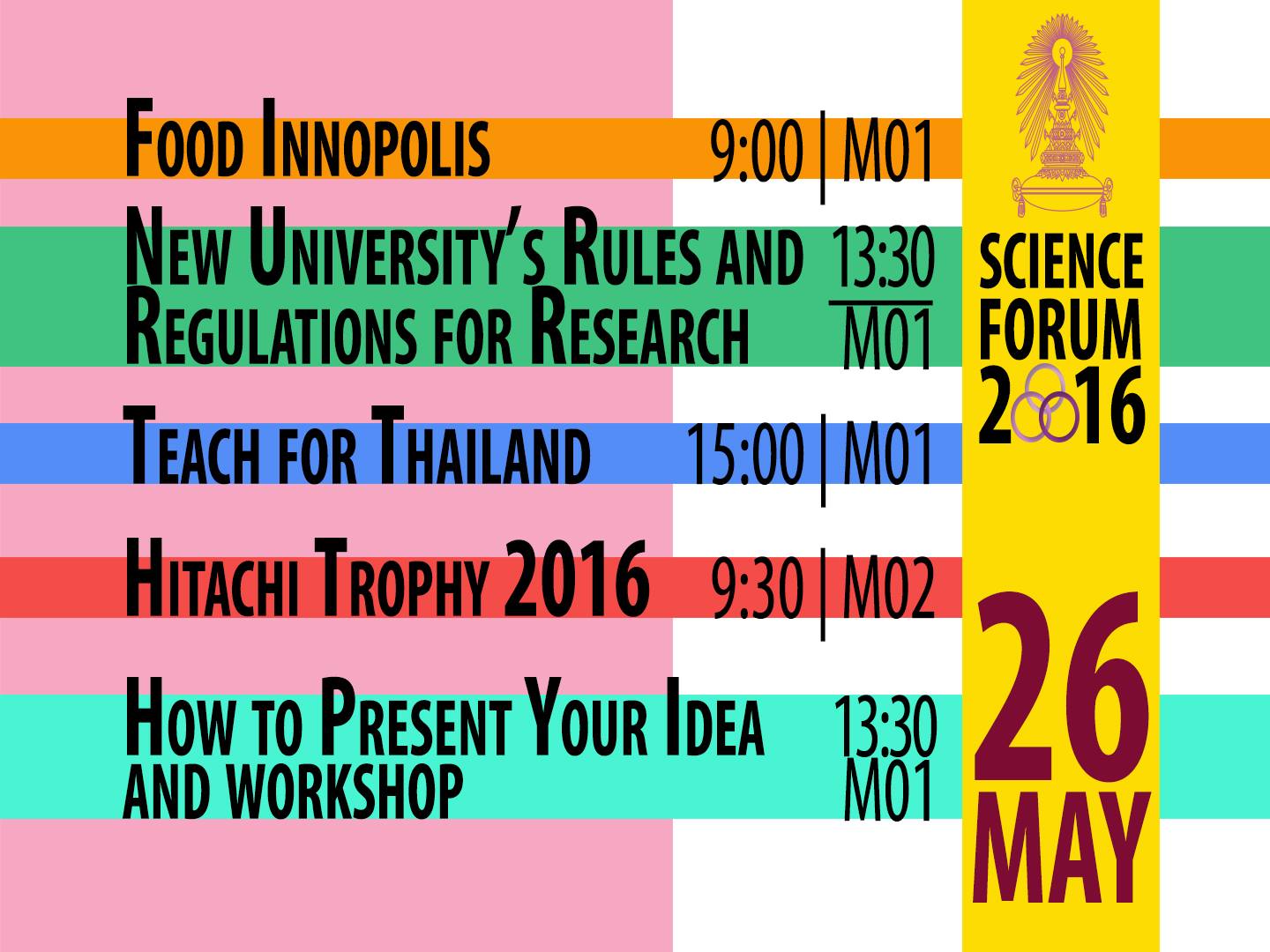 ขอเชิญชวน คณาจารย์ นักวิจัย บุคลากรสายสนับสนุน และนิสิตในระดับปริญญาบัณฑิตและบัณฑิตศึกษา คณะวิทยาศาสตร์ นักวิจัยจากภาคอุตสาหกรรม เข้าร่วมการประชุมวิชาการ The Science Forum 2016 การประชุมวิชาการ ครั้งที่ 24 ประจำปี 2559 “University-Industry Partnership” Venue: Mahamakut Building (MHMK) Faculty of Science, Chulalongkorn University วันพฤหัสบดีที่ 26 และวันศุกร์ที่ 27 พฤษภาคม 2559 ณ อาคารมหามกุฏ คณะวิทยาศาสตร์ จุฬาลงกรณ์มหาวิทยาลัย