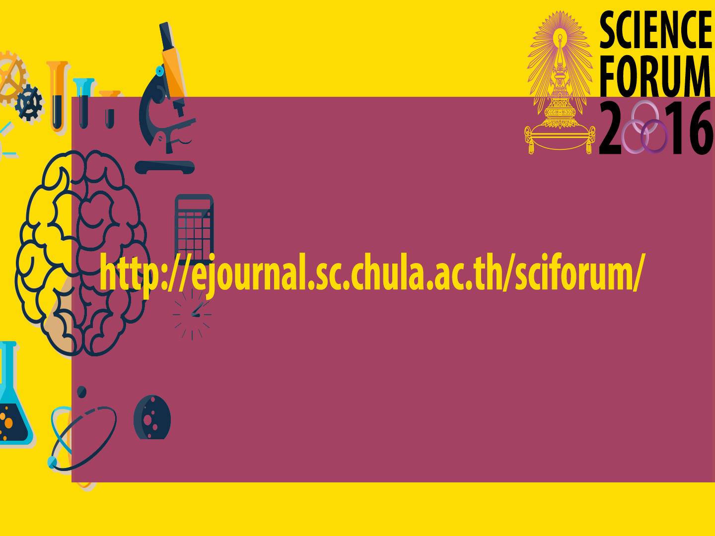ลงทะเบียนเข้าร่วมงานประชุม ฟรี ที่ http://ejournal.sc.chula.ac.th/sciforum/