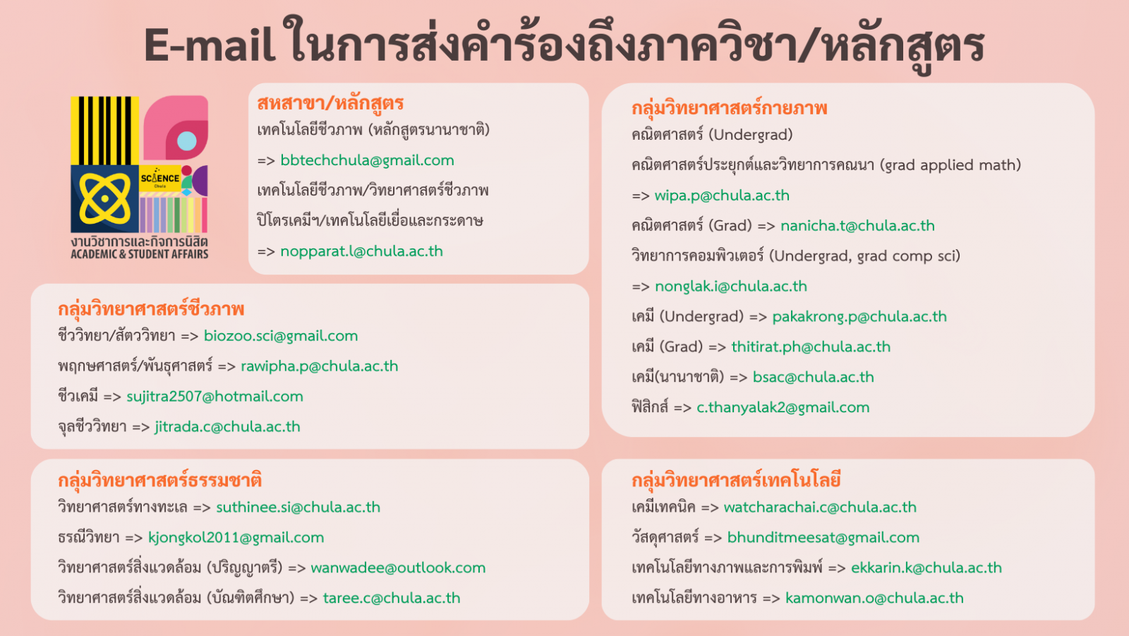 อีเมลเจ้าหน้าที่ภาควิชาที่รับคำร้อง | ดาวน์โหลด