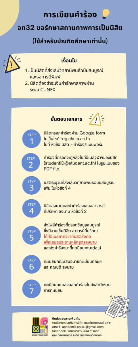 จท.32 คำร้องขอรักษาสถานภาพการเป็นนิสิต | ขั้นตอนการส่งคำร้อง