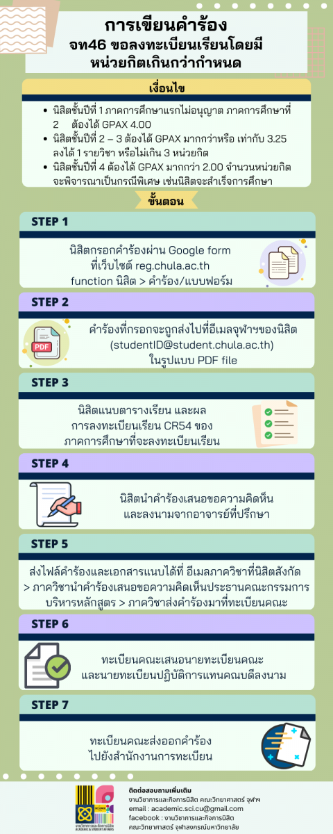 จท.46 คำร้องขอลงทะเบียนเรียนโดยมีหน่วยกิตเกินกว่ากำหนด | ขั้นตอนการส่งคำร้อง