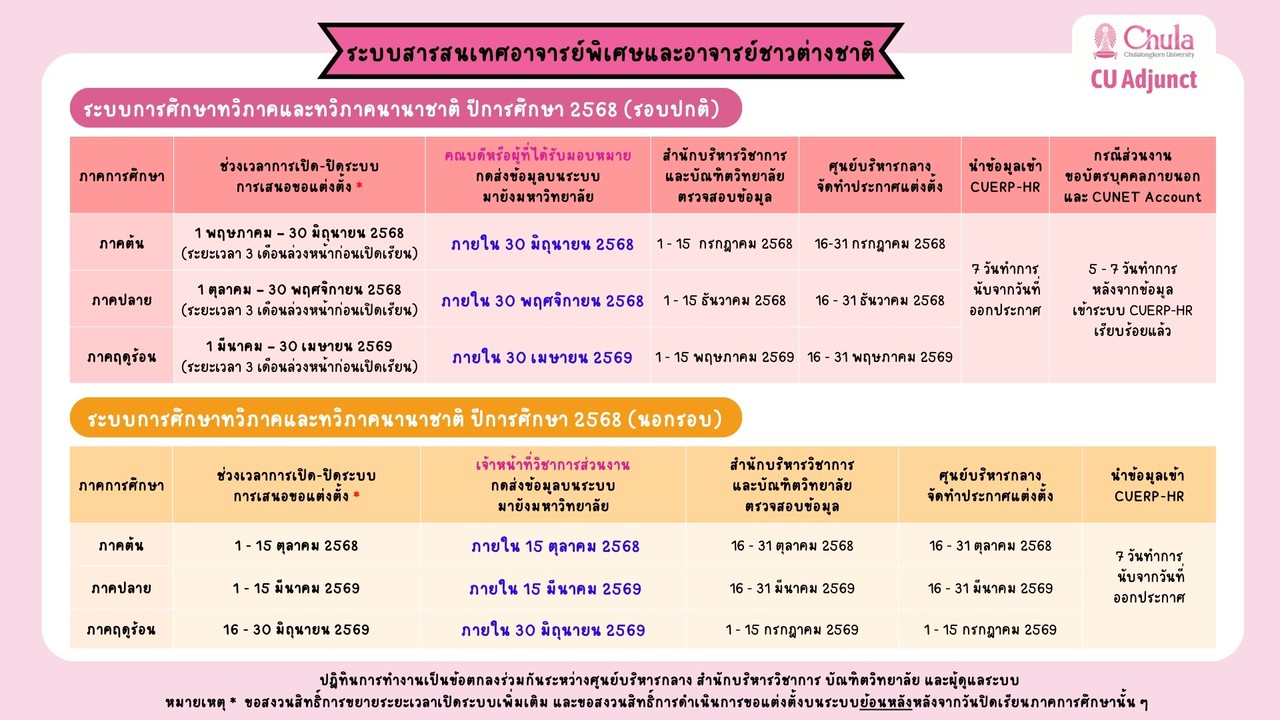 การเสนอแต่งตั้ง/เชิญสอนอาจารย์พิเศษ-วิทยากร จุฬาลงกรณ์มหาวิทยาลัย (CU Adjunct)